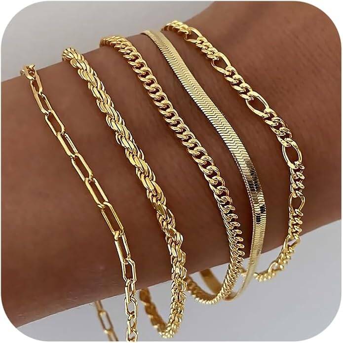 DEARMAY 14K Gold Plated Bracelets for Women, Jewelry Sets Cute Tennis Beaded Bracelets Cuban Link Paperclip Chain Dainty Bracelet Pack Gifts, on sale at 50% off for just $9.99! Go HERE