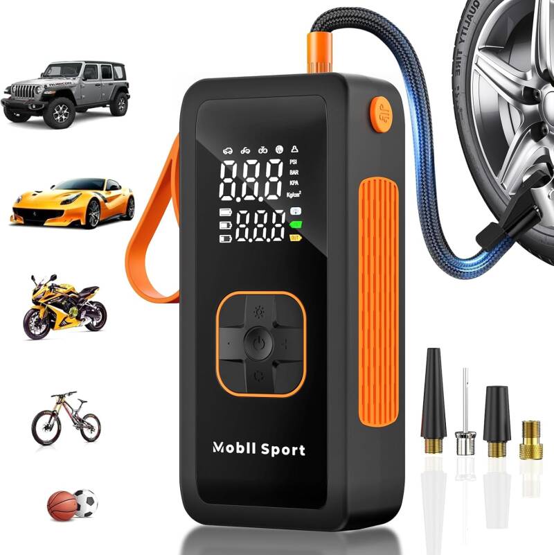 This cordless air pump is perfect for car tires, motorcycles, bicycles, sports balls, and more. It also includes a built-in LED light and auto shut-off function so you can easily inflate to the exact pressure you need.