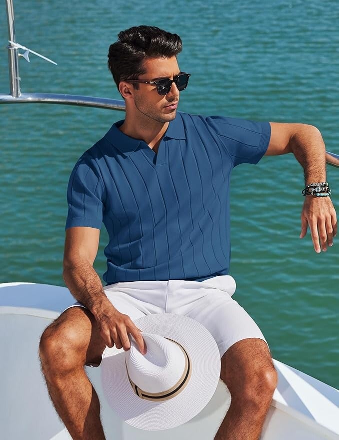 Today only! Grab the COOFANDY Men’s Short Sleeve V-Neck Polo Shirt in Lake Blue for just $18.21 on a Lightning Deal.
