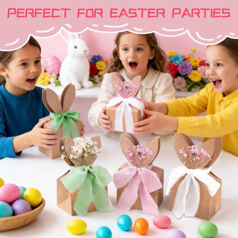 These cute DIY boho-style rabbit ear boxes come with dried flowers and ribbon, perfect for Easter treats, classroom parties, birthdays, or spring celebrations.