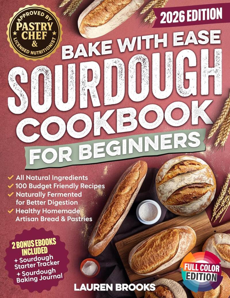 Bake with Ease Sourdough Cookbook for Beginners: A Step-by-Step Guide to Creating Healthy, Homemade Artisan Breads & Pastries with All-Natural Ingredients and 100 Budget Friendly Recipes. Go HERE