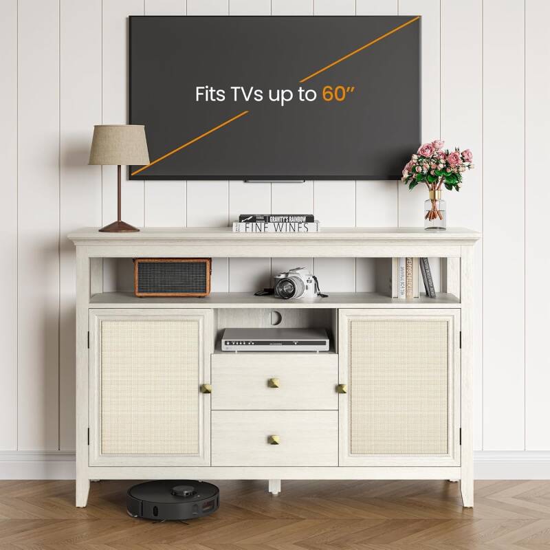 Perfect for kitchens, dining rooms, or entryways, this piece combines function and modern farmhouse charm. It’s also versatile enough to double as a TV stand—perfect for placing your television on top while keeping media items neatly stored below.