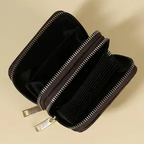 Leather Accordion Card Wallet, Double-Layer Zippered Card Holder $14.00!